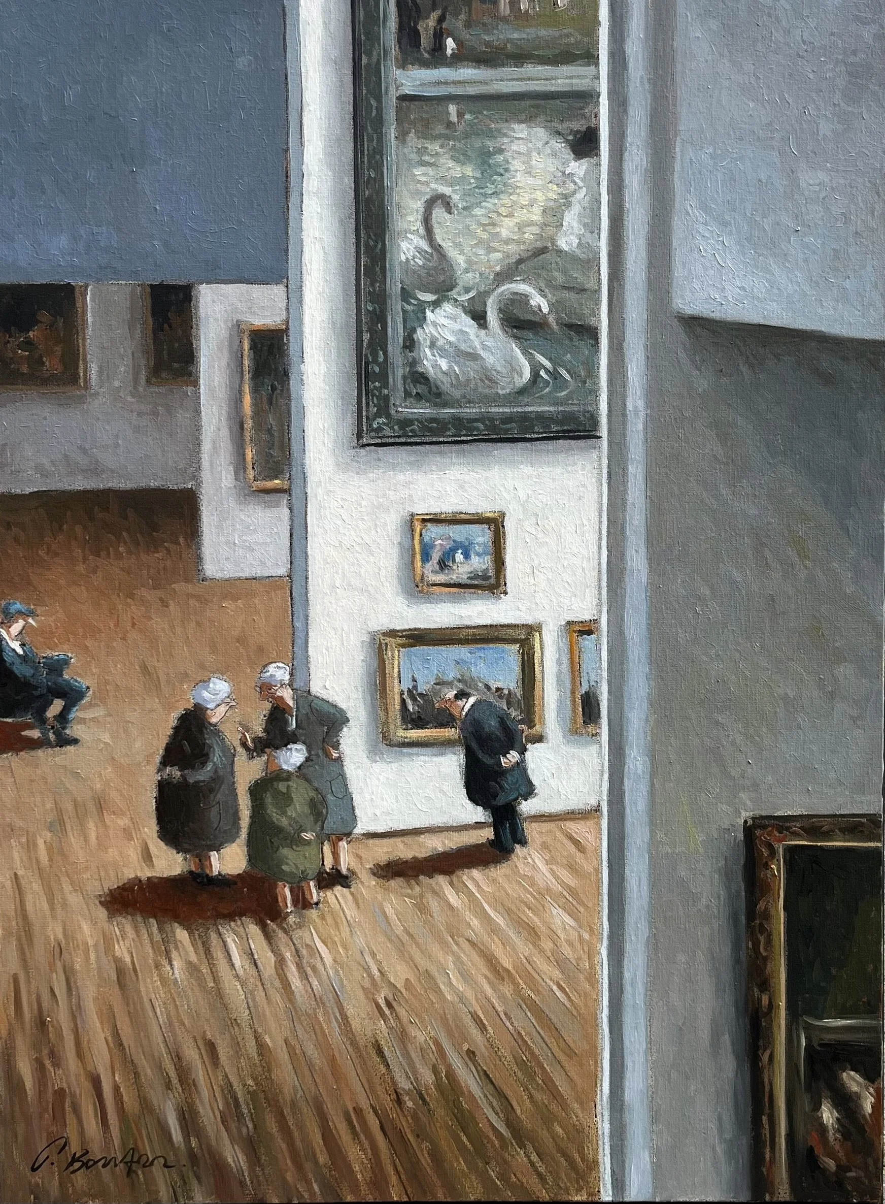 A very special place in his work is reserved for two seemingly different fields of dance and culinary art: the former speaks of memories of seeing his own daughter transform from a clumsy child into a gracious ballet dancer, the latter is a testament to his decades-long friendship with a chef and restaurant owner in sunny Toulouse. Regardless of the subject matter, Bossard injects his works with humor and, as he hopes, optimism. Exhibits in Paris, Toulouse, and throughout France.UK, London, NEC Birmingham, Cambridge, Edinburgh.